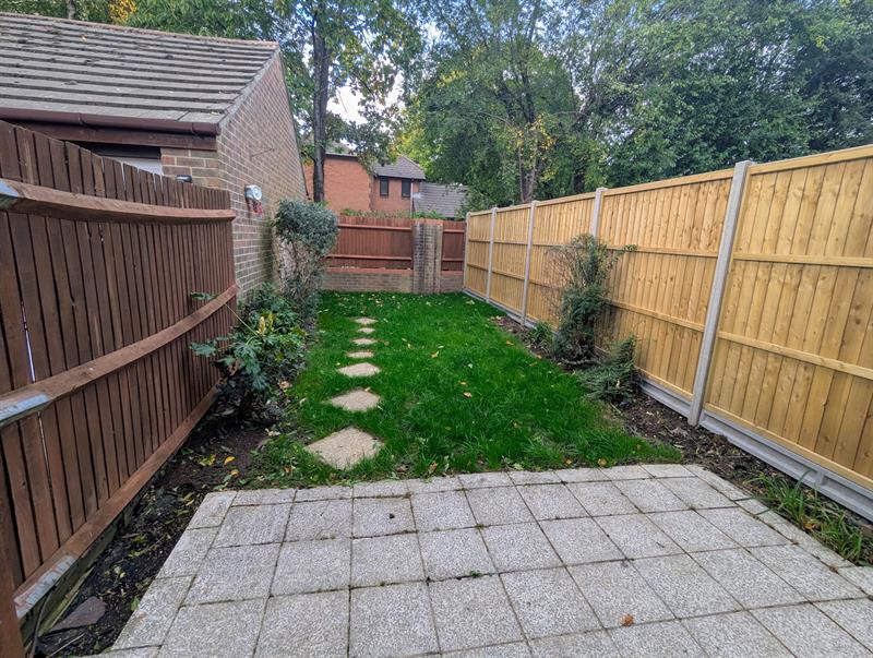Private, fully enclosed rear garden with patio area, lawn and shrub borders, gate to driveway.