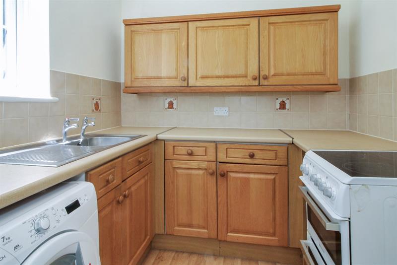 Double glazed window to side, fitted with a range of wall and base units with work surfaces over, single drainer stainless steel sink unit with cupboard below, partially tiled walls, electric cooker point, space for refrigerator, plumbing for washing machine.