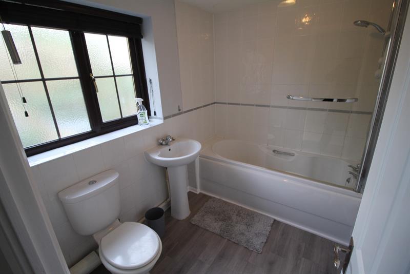 Mid terrace house with one double bedroom and a white suite bathroom upstairs.
